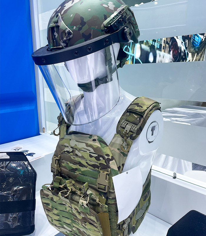 - -Modular armor plates with ceramic-polyethylene hybrids, offering Level IV protection at half the traditional weight.